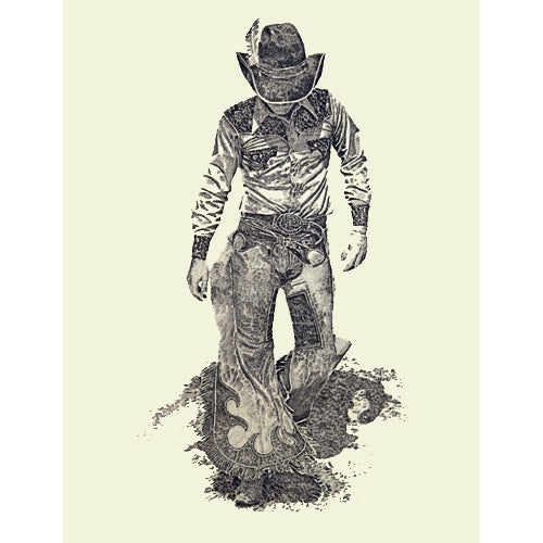 This limited edition offset lithograph by Murray Tinkelman award winning artist, illustrator, historian and educator entitled The Cowboy measures 22 X 17 inches. The artist uses black ink and graphic clarity in his illustration of a rodeo cowboy. The print is in excellent condition and hand signed by the artist in pencil at the bottom. The Norman Rockwell Museum certifies the signature to be authentic.