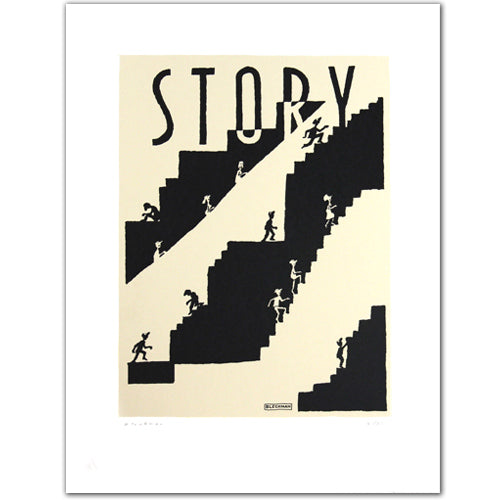 Story magazine, founded in 1931, showcased stories by new authors. This first version of the periodical circulated until 1967, but in 1989, the magazine was resurrected and ran through the Winter 2000 issue. During its ten-year run, Blechman produced illustrations for every cover of the quarterly magazine, a project that he greatly enjoyed.