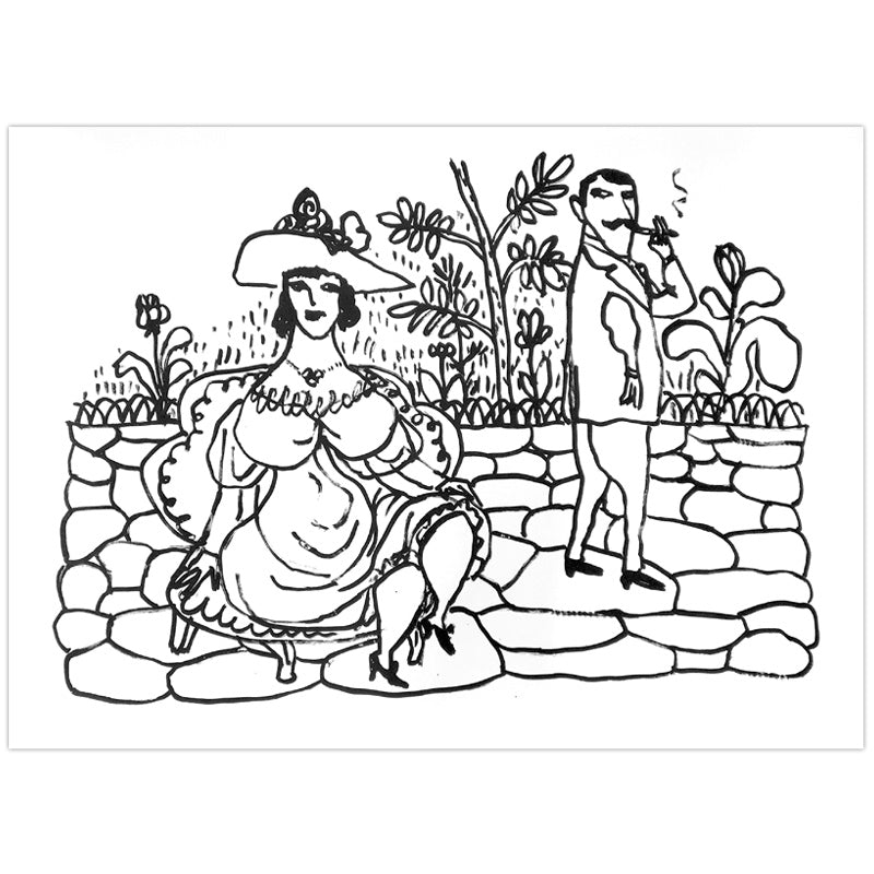 William Steig Couple on Patio Signed Print