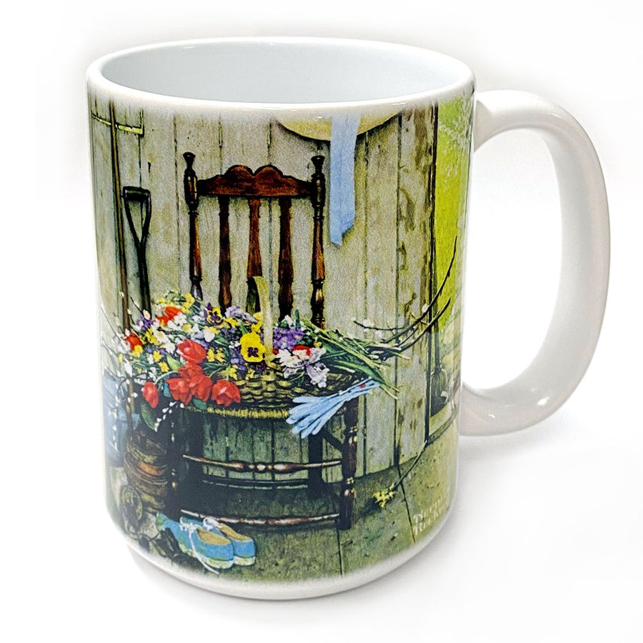 Norman Rockwell Spring Flowers, McCall's magazine, 1969. Makes a great gift! Porcelain with decals. Height 4 in., width 4 1/2 in., diameter 3 1/4in.; capacity 11oz. not Dishwasher and microwave safe.