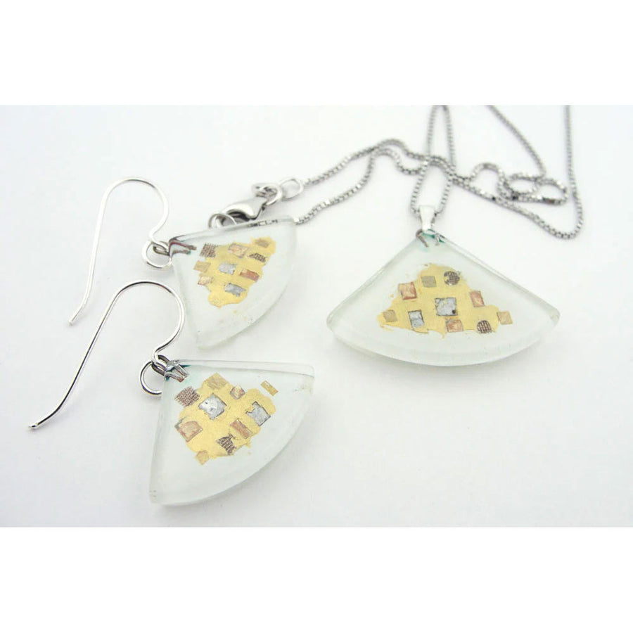 Glasswork jewelry will ship separately from other items in your cart, fulfilled directly from the artist's studio. Each set is uniquely hand painted onto glass, items may vary slightly from photographed example.