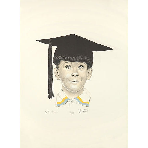 Originally created for a 1959 Fidelity Bank advertisement, Big Day was hand proofed and printed by Circle Gallery. The lithograph measures 29 by 20 inches, and the edition consists of 295 impressions. 200 were numbered and 60 artist proofs were signed in pencil by Norman Rockwell. An additional 35 prints were signed and designated with Roman numerals.