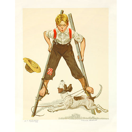 Originally printed for the October 4, 1919 edition of the Saturday Evening Post, the boyish playfulness depicted in this print was a consistent theme in Rockwell's works. In his paintings, Rockwell repeatedly illustrated the idea of American boyhood and never failed to capture the mischief that kids got themselves into.