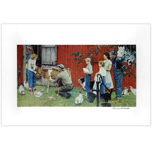 Originally created for the July 24, 1948 edition of The Saturday Evening Post, County Agricultural Agent was hand proofed and printed by Circle Gallery. This full color collotype measures 24 by 35 inches, and the edition consists of 295 impressions. 200 were numbered and 60 artist proofs were signed in pencil by Norman Rockwell. An additional 35 impressions were pencil signed and designated with Roman numerals.