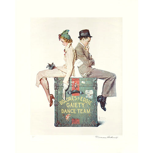 This limited edition offset print entitled Gaiety Dance Team measures 23 X 18 inches and was signed by hand in permanent marker by Norman Rockwell in the lower right corner. Gaiety Dance Team was first published on the cover of The Saturday Evening Post June 12, 1937. This print has vibrant color, clarity and is in excellent condition and has never been conserved.