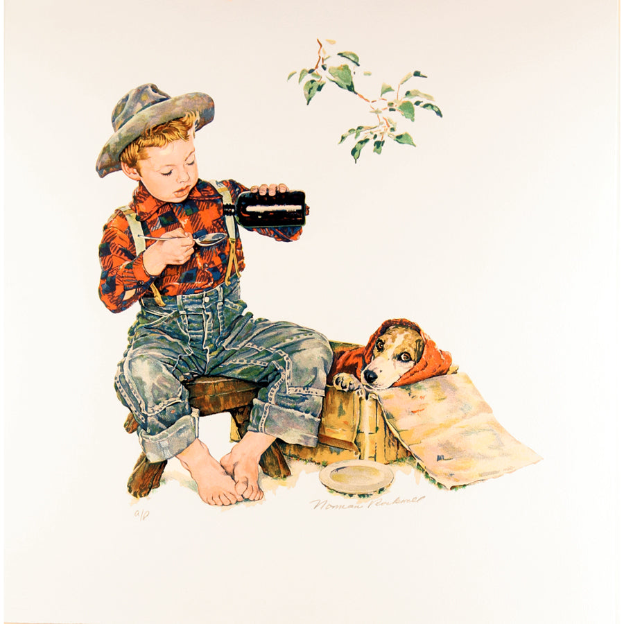 Originally used for a 1958 Brown & Bigelow calendar, this twelve-color lithograph, measuring 20 by 21-1/3 inches, is one of four lithographs in a specially designed portfolio, hand proofed and printed at Atelier Ettinger in 1975. The edition consists of 320 impressions on papier d'Arches. 200 were numbered and 60 artist proofs were signed in pencil by Norman Rockwell. An additional 35 impressions, pencil signed and designated with roman numerals, were reserved for the artist. 25 deluxe signed artist proofs were printed on Inomachi Nacre (Japon) paper.