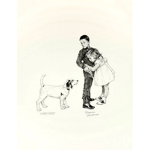 Limited Edition. Mass Mutual advertisement. Norman Rockwell's eighty pencil drawings done for Massachusetts Life Insurance Company, first appeared in a series of national consumer advertisments sponsored by the Company during the 1950's and 60's. Because Rockwell presented an essentially idealistic view of American life, his appeal has remained widespread over the years. This appeal seems to be derived from the familiar believable traits of each of the artist's characters and the nostalgic mood of their settings. As Rockwell once said: "Maybe I grew up and found out that the world wasn't the perfectly pleasant place I thought it to be I unconsciously decided that, even if it wasn't an ideal world, it should be and so painted only the ideal aspects of it..."