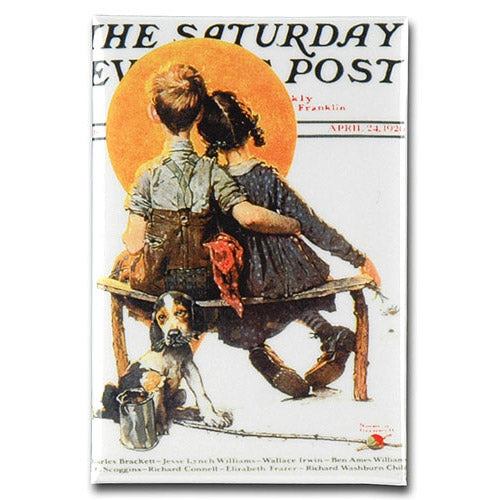 Norman Rockwell Puppy Love (Little Spooners, Sunset) Saturday Evening Post cover April 24, 1926. Magnet measures 2" x 3" inches, made in the USA!